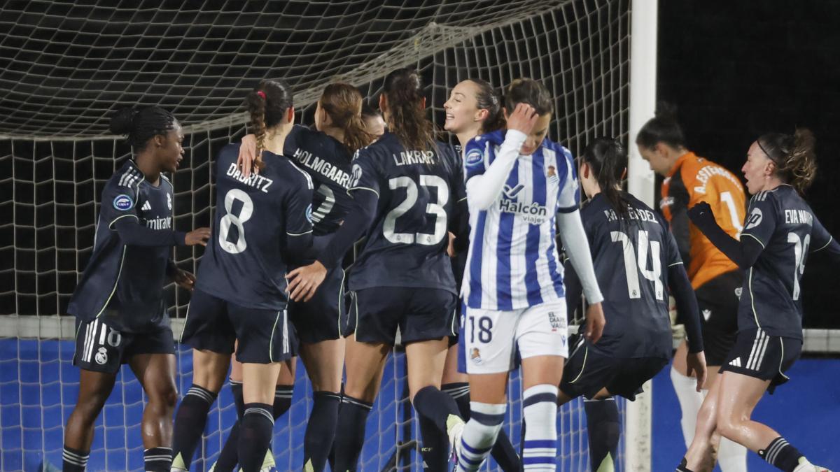 <![CDATA[ El Real Madrid resolvió en la segunda mitad un exigente duelo ante la Real Sociedad gracias a un fulgurante tramo final en el que anotó tres goles en apenas once minutos. Toletti abrió el marcador desde los once metros, Holmgaard amplió la ventaja de cabeza y Eva Navarro cerró la victoria también desde el punto de penalti, firmando un 0-3 que refuerza la segunda posición del conjunto blanco en la Liga F. wf_cms.rss.read_more ]]> Publicado por:Fútbol Navegación de entradas Molina: «Los compañeros me animan a que la pegue, salió bien, muy contento en todos los sentidos» Real Madrid – Elche, última hora en directo | LaLiga EA Sports de fútbol en vivo y online